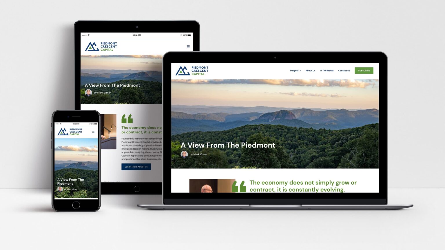 Piedmont Crescent was founded by nationally recognized economist Mark Vitner, who provides common-sense market insight to clients across the country. Mark came to Woland Web wanting a website where he could publish his market reflections, making his insight widely accessible while also conveying his eminent reputation and professionalism.