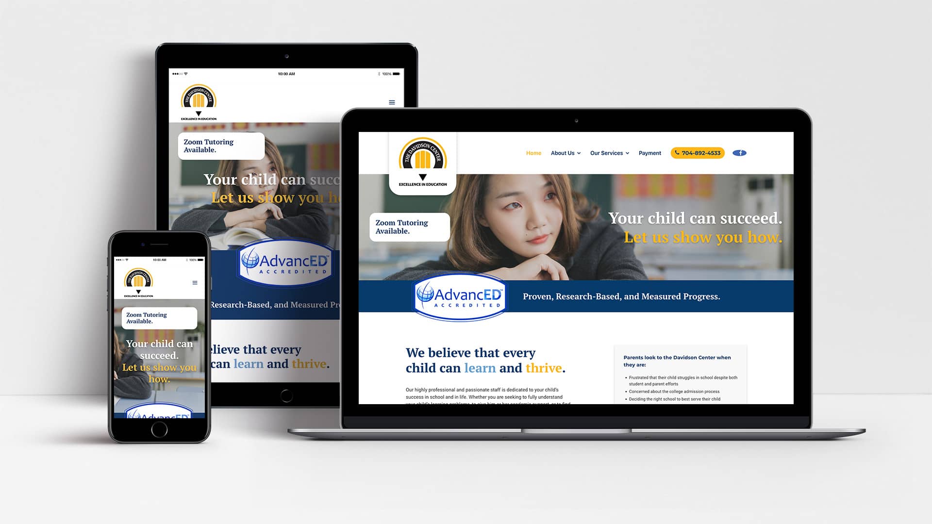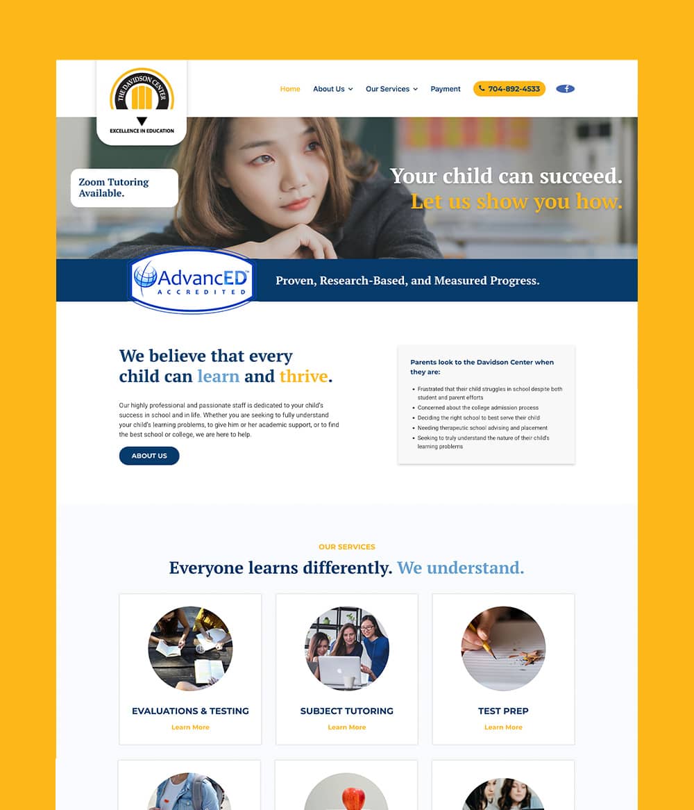 The Davidson Center for Learning and Academic Planning was founded in 1999. From the outset, they made the commitment to help children and adolescents thrive educationally by providing the best individualized services possible. With the help of a uniquely experienced psychologist, Dr. Gary Patrick, and two tutors, they opened their doors in August of 1999. Along the way they attracted dedicated professionals who shared their vision for learning and who brought their talents, expertise and dedication. Thei highly qualified staff includes Ph.D. and Master’s Level professionals, L.D. specialists and certified elementary and high school teachers.